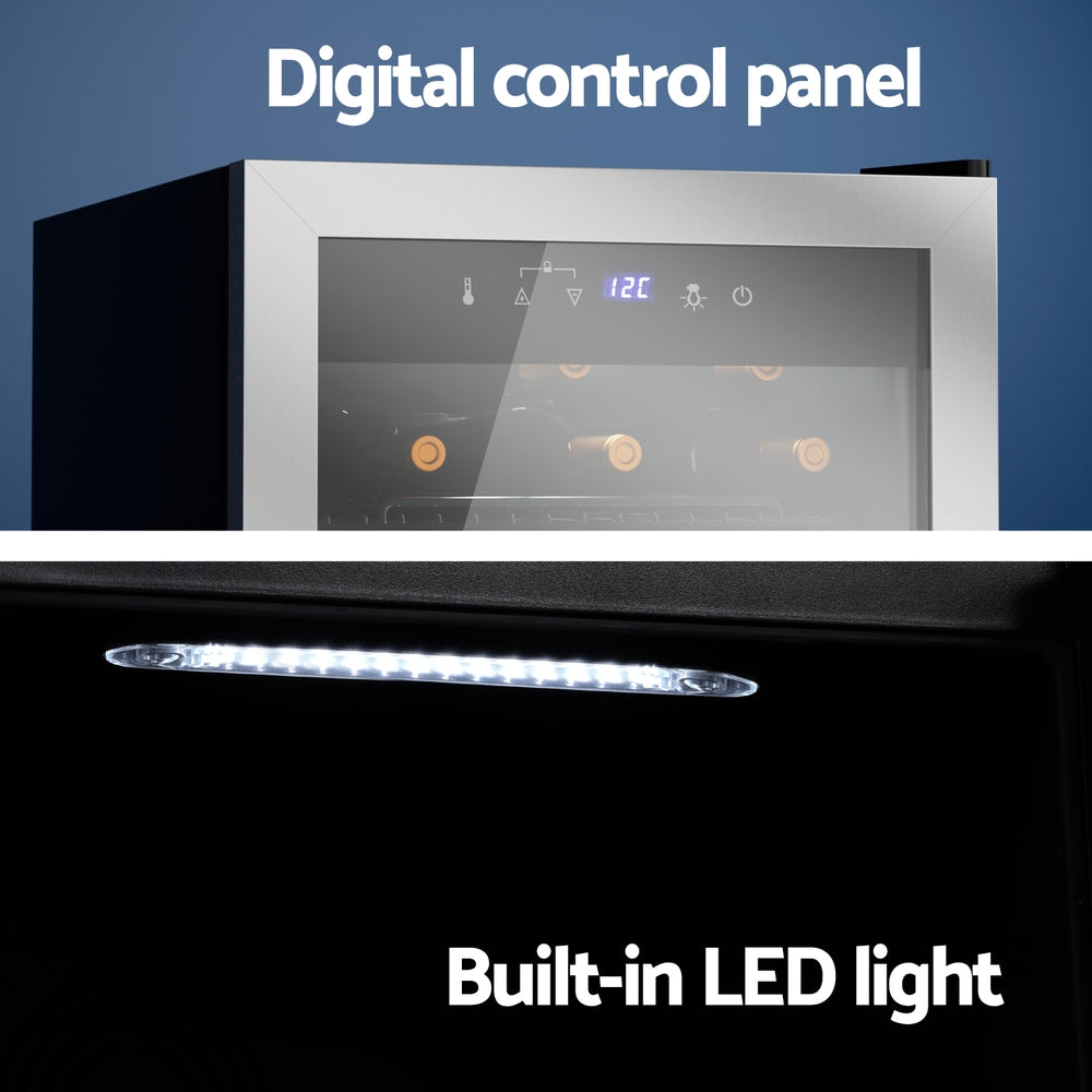 Experience the essence of fine wine with our state-of-the-art Devanti wine cooler. Ensuring precise temperature consistency, its contemporary design complements any decor while safeguarding your collection. Featuring a 360 degrees cooling system, UV-resistant glass, and built-in lighting, it effortlessly merges elegance with functionality. Whether you arecurating a collection or simply savoring favorites, ensure they are served at their finest.